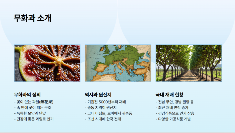 원산지는 중동 지역이며, 기원전 5,000년 전부터 인류가 재배해 온 오래된 과일 중 하나입니다. 특히 고대 이집트와 로마에서도 신의 음식이라 불릴 정도로 귀하게 여겨졌다고 해요. 우리나라엔 조선 시대에 전래되었고, 최근엔 전남 무안, 경남 밀양 등에서 활발히 재배되고 있어요.