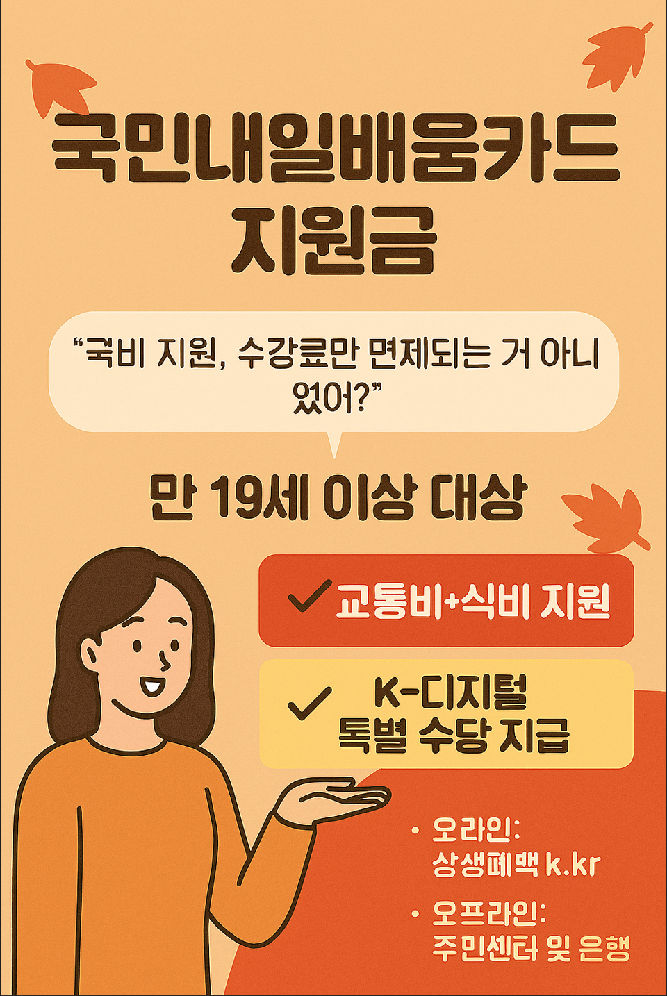 국민내일배움카드는 잘 쓰면 '수강료 무료'를 넘어 '용돈 받는 공부'가 될 수 있습니다. 특히 디지털 분야로 취업을 꿈꾼다면 K-Digital Training을 통해 스펙과 지원금을 동시에 챙기는 것이 가장 현명한 전략입니다.