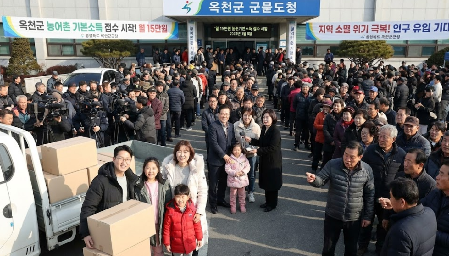 2026년 1월 8일 목요일, 충북 옥천군이 전국적인 이목을 집중시켰습니다. 바로 충북에서 유일하게 모든 주민에게 매달 15만 원을 지급하는 농어촌 기본소득 신청이 시작된 날이기 때문이죠. 아침 일찍부터 접수처는 몰려드는 인파로 발 디딜 틈 없이 북새통을 이뤘습니다. 예상했던 혼잡 상황에 대비해 가장 넓은 회의장을 접수처로 마련했지만, 문턱을 넘기도 어려울 정도로 뜨거운 열기였습니다.