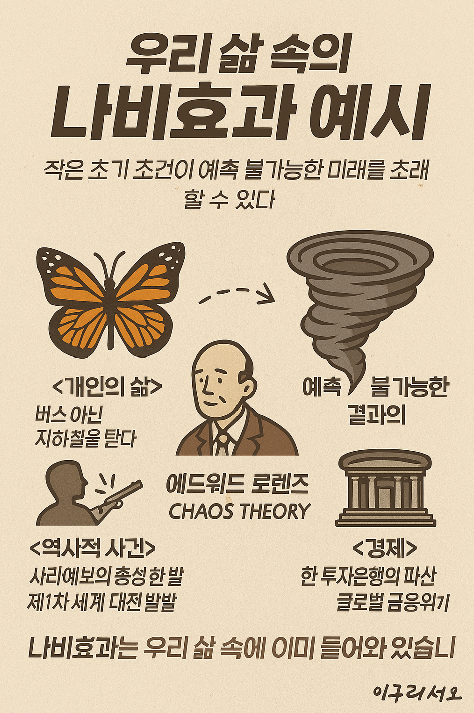 이 거대한 이론이 우리 삶과는 어떤 관련이 있을까요? 사실 우리 삶 자체가 나비효과의 연속입니다.