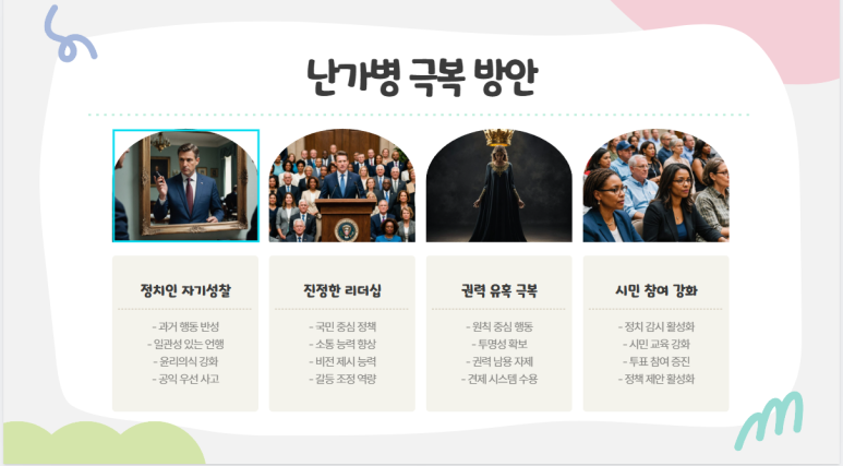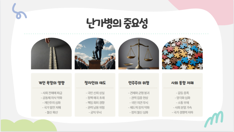 이런 표현들이 중요한 이유는 개인의 욕망이 사회 전체에 미치는 영향을 보여주기 때문이에요. 특히 정치인처럼 공적인 역할을 맡은 이들이 자기중심적인 태도를 보이면, 그 피해는 고스란히 국민들에게 돌아가죠. 대통령이라는 자리를 향한 과도한 집착은 정책의 본질을 흐리고, 국민의 신뢰를 잃게 만들어요. ‘난가병’에 걸린 정치인은 자신의 이익과 권력을 우선시하며, 국가와 국민을 위한 진정한 리더십을 발휘하기 어려워요. 이는 민주주의의 근간을 흔드는 심각한 문제로 이어질 수 있죠.