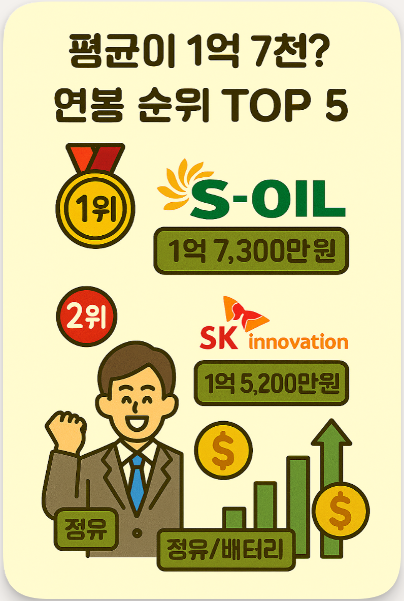 | 1위 | 에쓰오일 (S-Oil) | 1억 7,300만 원 | 정유 |