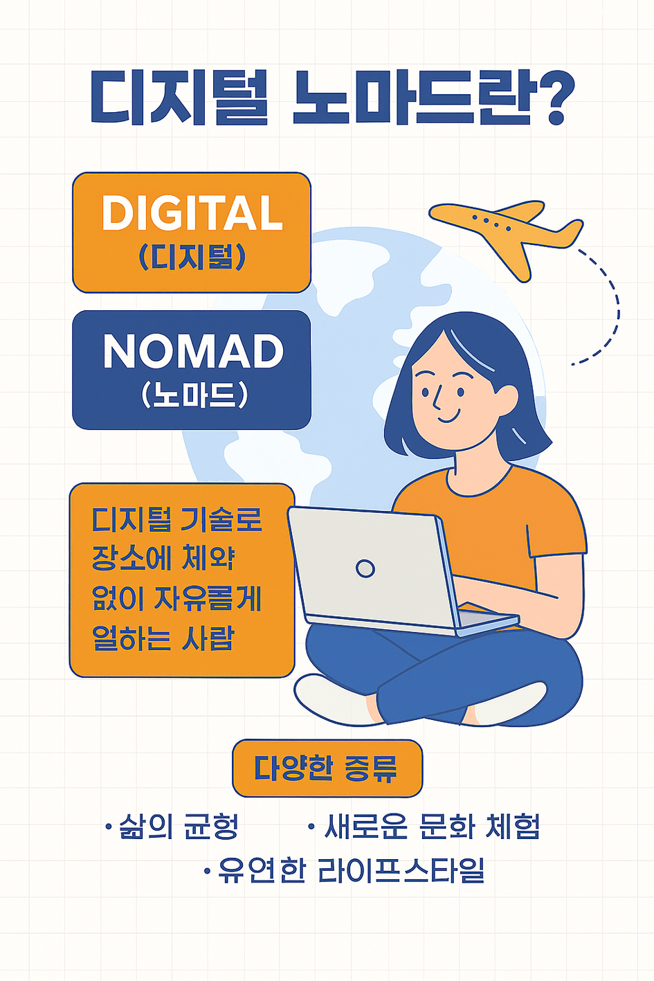 그래서 오늘은 '디지털 노마드'의 정확한 뜻이 무엇인지 알아보고, 프리랜서부터 원격 근무자까지 어떤 다양한 종류가 있는지 쉽고 명확하게 설명해 드릴게요. 어쩌면 여러분에게 꼭 맞는 삶의 방식일지도 몰라요!