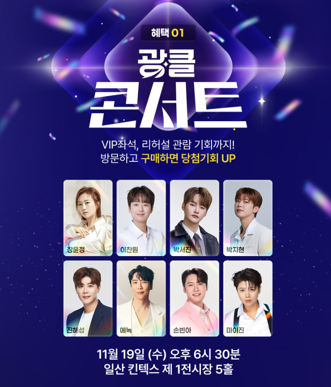 | 행사명 | 광클콘서트 | 인기 트로트 가수 8인 출연 |