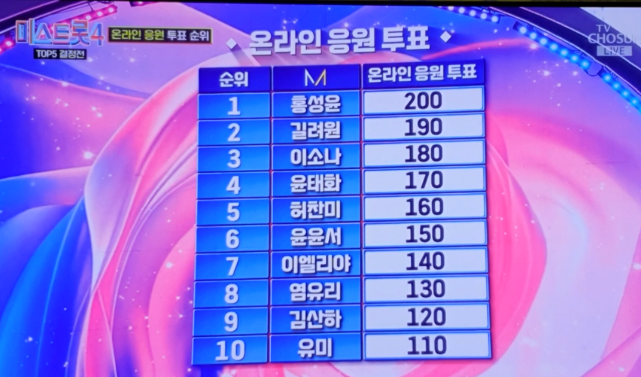 미스트롯4 준결승 TOP5 최종 순위 (일부)