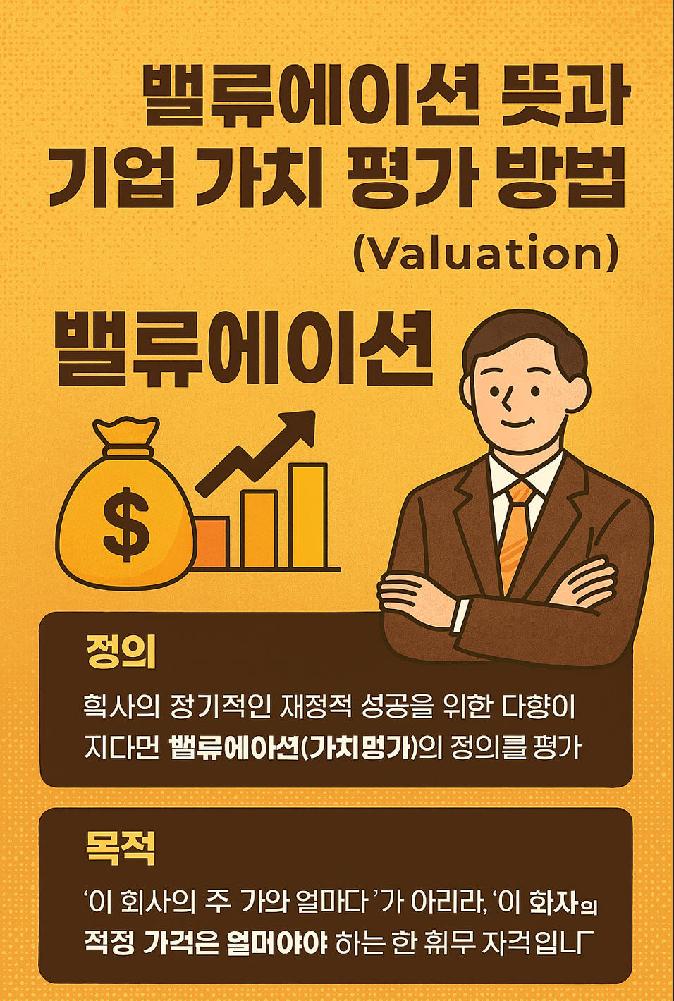 - [밸류에이션 뜻]: 기업이나 자산의 현재 가치를 평가하여 적정 가격을 산정하는 프로세스.
