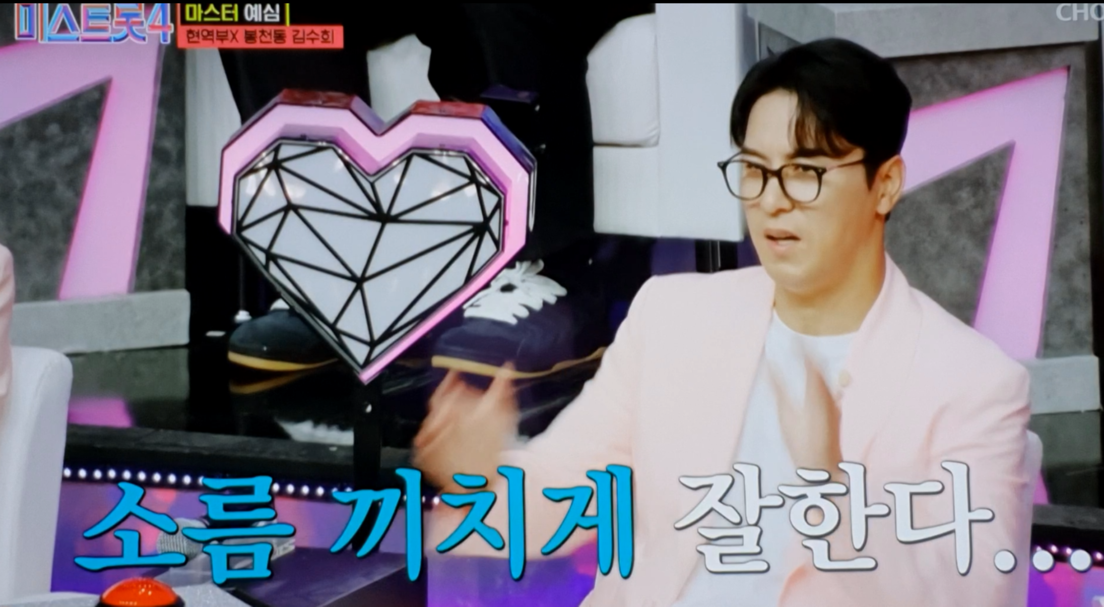 윤태화 님은 곡의 초반부에서는 애절하게 속삭이다가, 클라이맥스에서는 한을 토해내듯 폭발적인 성량을 뿜어냈습니다. "트롯은 이렇게 부르는 것이다"라고 웅변하는 듯한 완벽한 완급 조절에 마스터들은 홀린 듯 하트 버튼을 눌렀고, 결국 올하트가 터졌습니다.