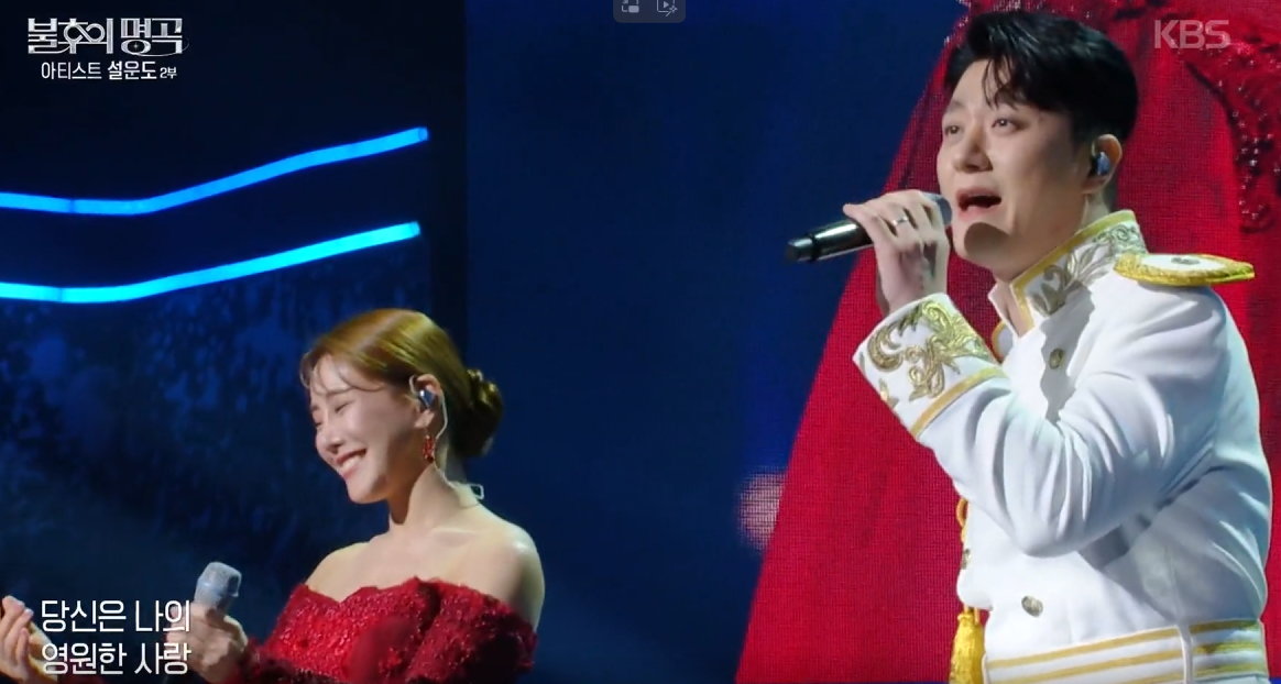 - ✅ 뮤지컬 배우 김소향, 윤형렬의 압도적인 가창력과 감정 표현으로 '별빛 같은 나의 사랑아'를 완벽 재해석.