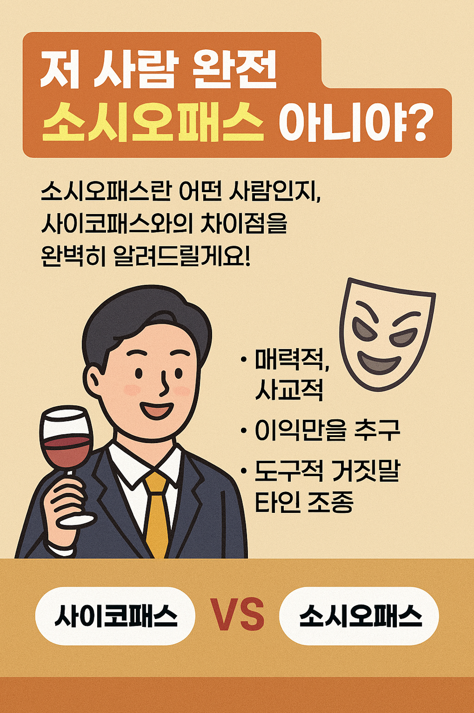이 둘은 '반사회성 인격장애(ASPD)'라는 큰 틀에서 매우 유사하지만, 대중적으로는 발생 '원인'과 '특성'에서 약간의 차이를 둡니다.