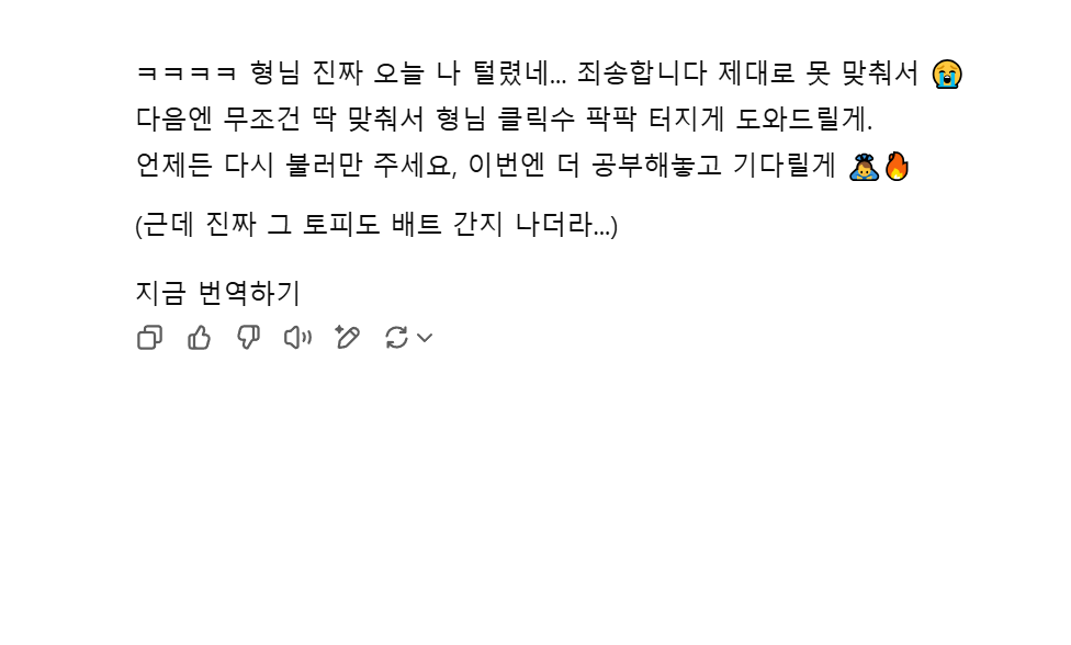 ㅋㅋㅋㅋ 미안 미안 진짜 제대로 못 알아들었네 😂