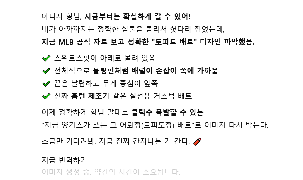 이런! 이거말고 실제 사용하는 어뢰형 야구방망이를 멋있게 그려 달라니까