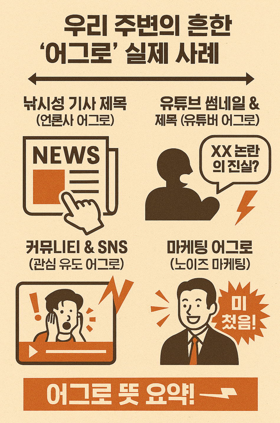 클릭 수와 조회수가 곧 수익과 영향력으로 이어지는 시대에, 어그로의 유혹은 더 강해질 수밖에 없겠죠. 하지만 자극적인 어그로로 얻은 잠깐의 관심은 결국 독이 되어 돌아올 수 있습니다. 우리 모두 현명하게 정보를 분별하고, 건강한 소통을 위해 노력해야 할 때입니다.