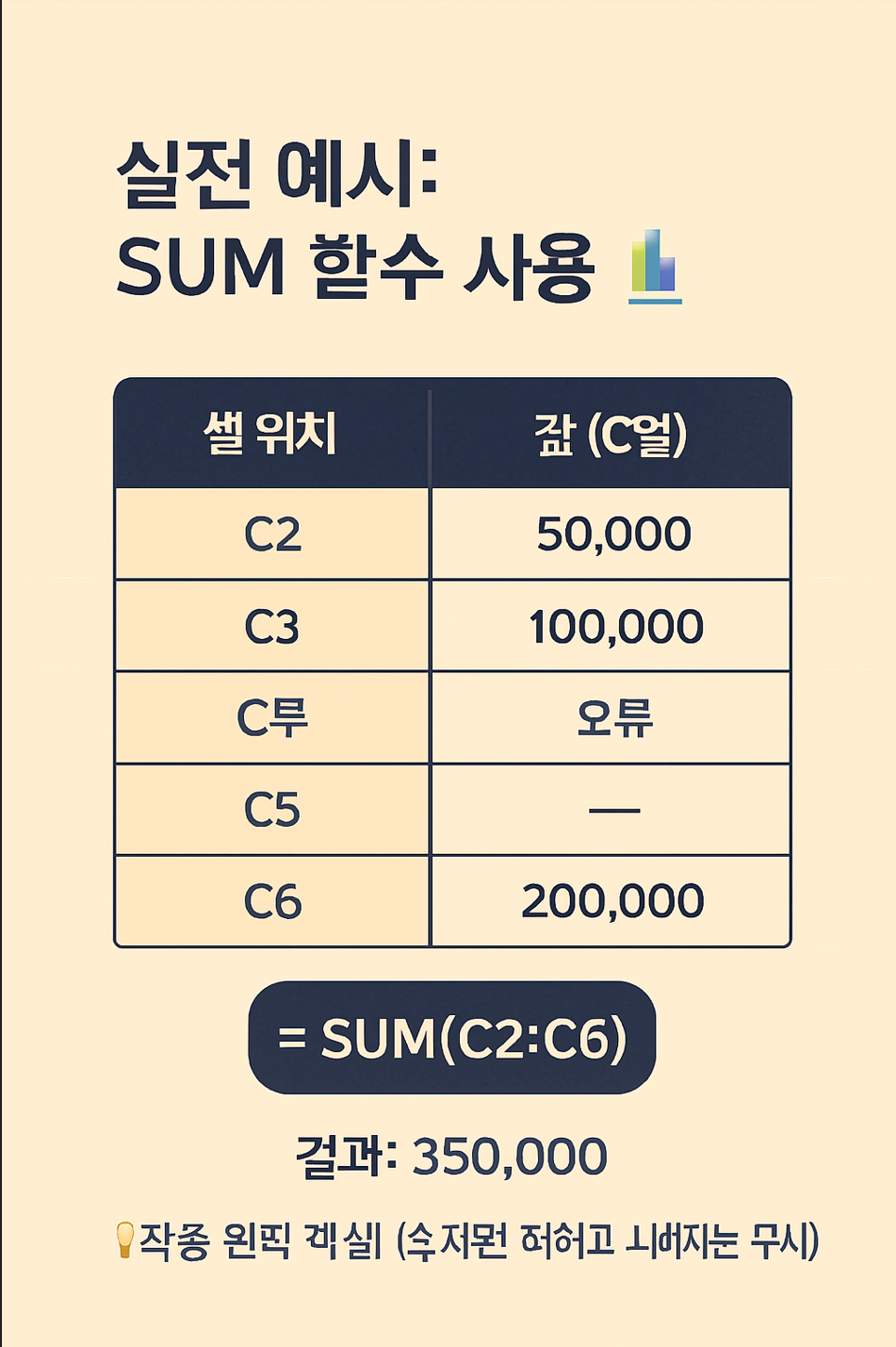 주의하세요! SUM 함수 사용 시의 함정 ⚠️