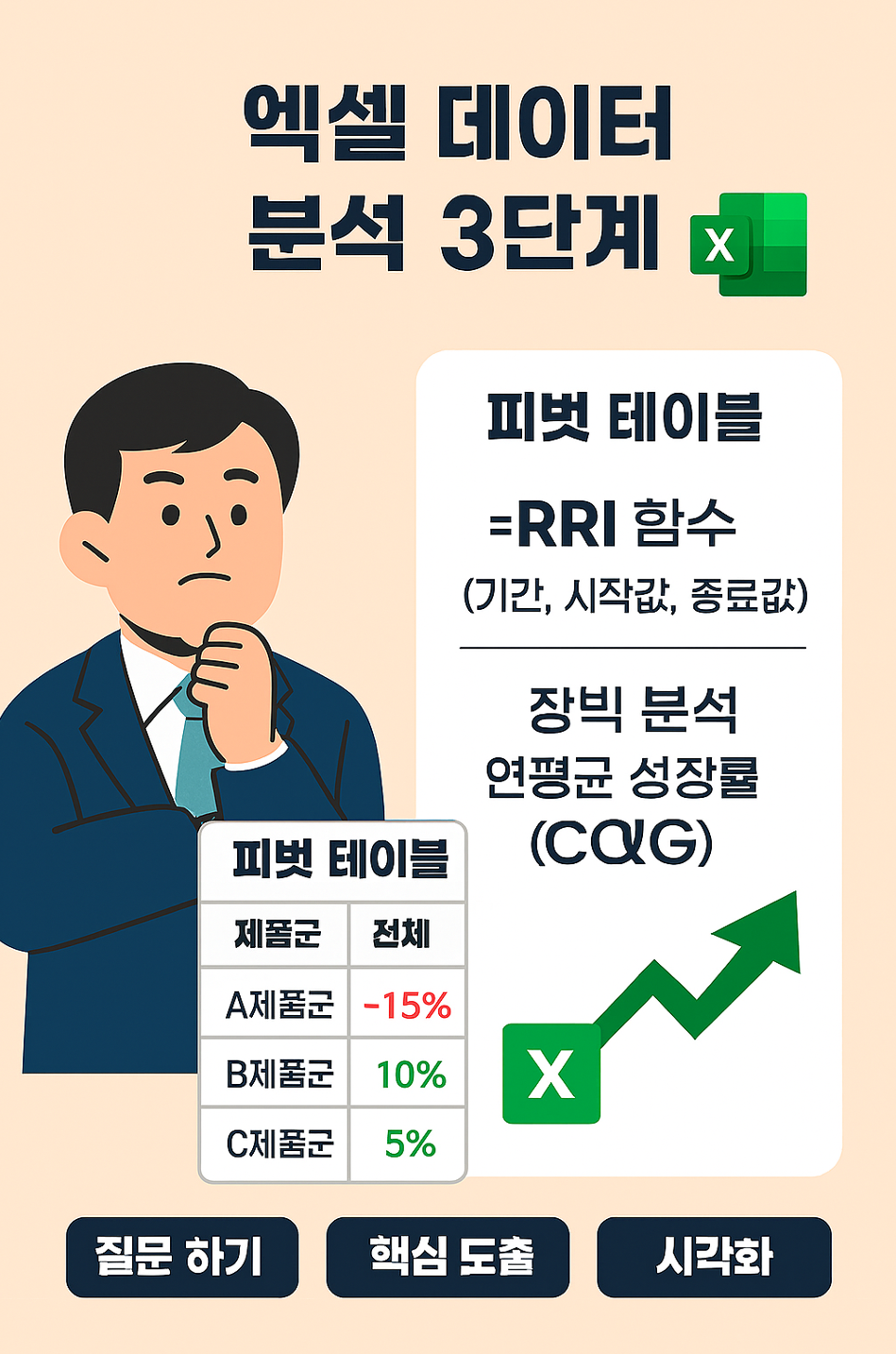 지금까지 엑셀을 활용한 실무 매출 분석 방법을 알아봤습니다. 거창한 통계 프로그램을 쓰지 않아도 엑셀만 잘 활용하면 우리 매장의, 우리 팀의 '숨겨진 매출 패턴'을 찾아낼 수 있습니다.