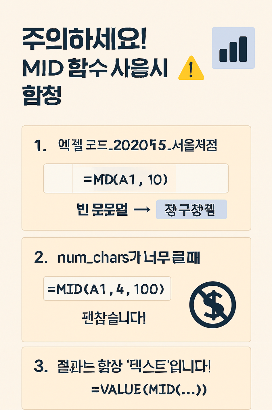 주의하세요! MID 함수 사용 시의 함정 ⚠️