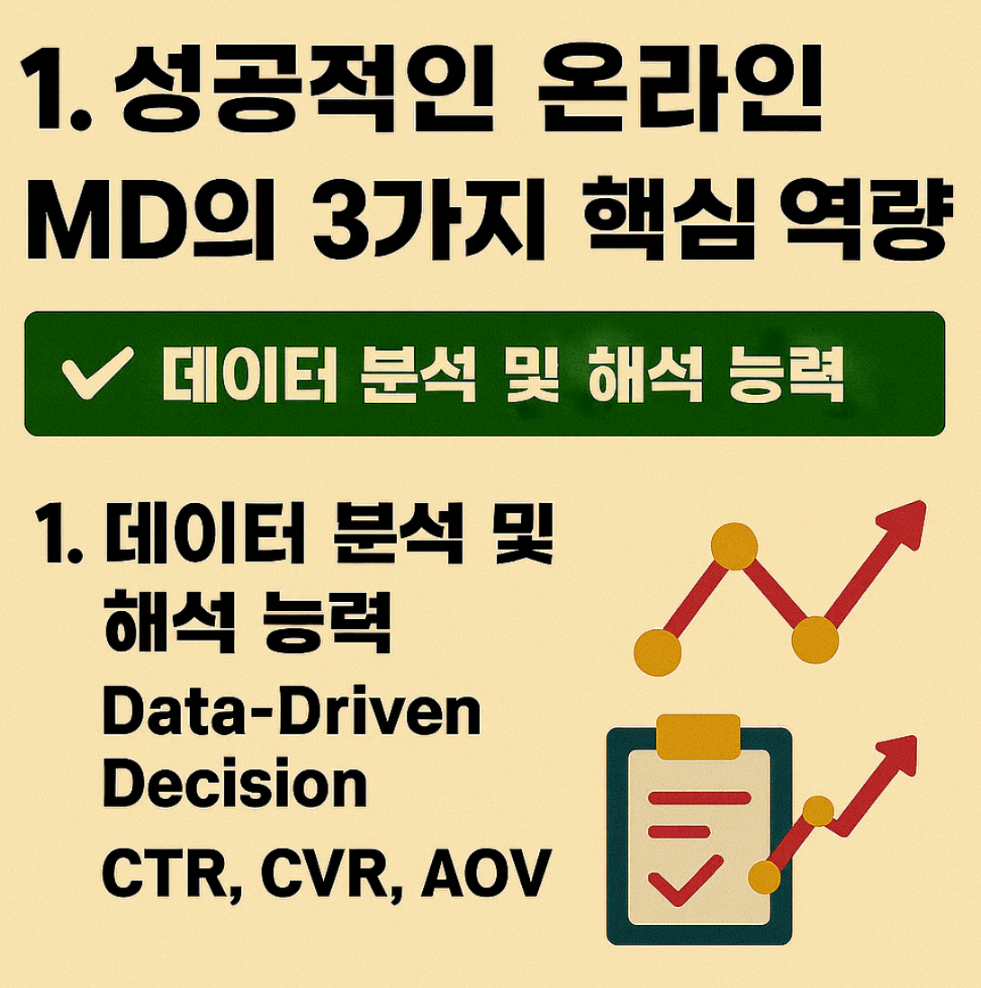 온라인 MD는 여러 부서와 소통하며 다양한 능력을 요구하는 멀티플레이어입니다. 다음 세 가지 역량이 특히 중요합니다.