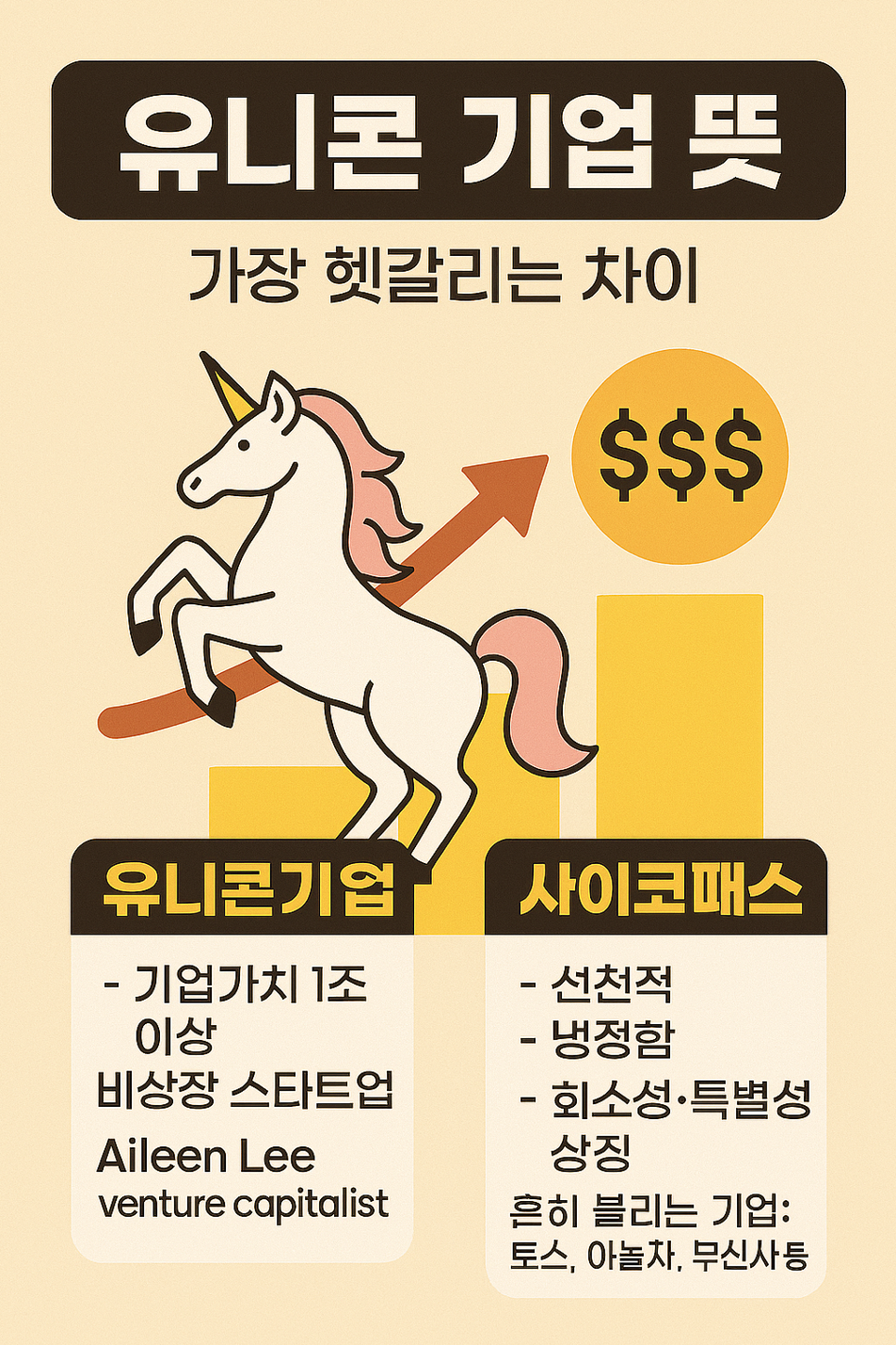 - 유니콘 (Unicorn): 기업 가치 10억 달러 (1조 원) 이상