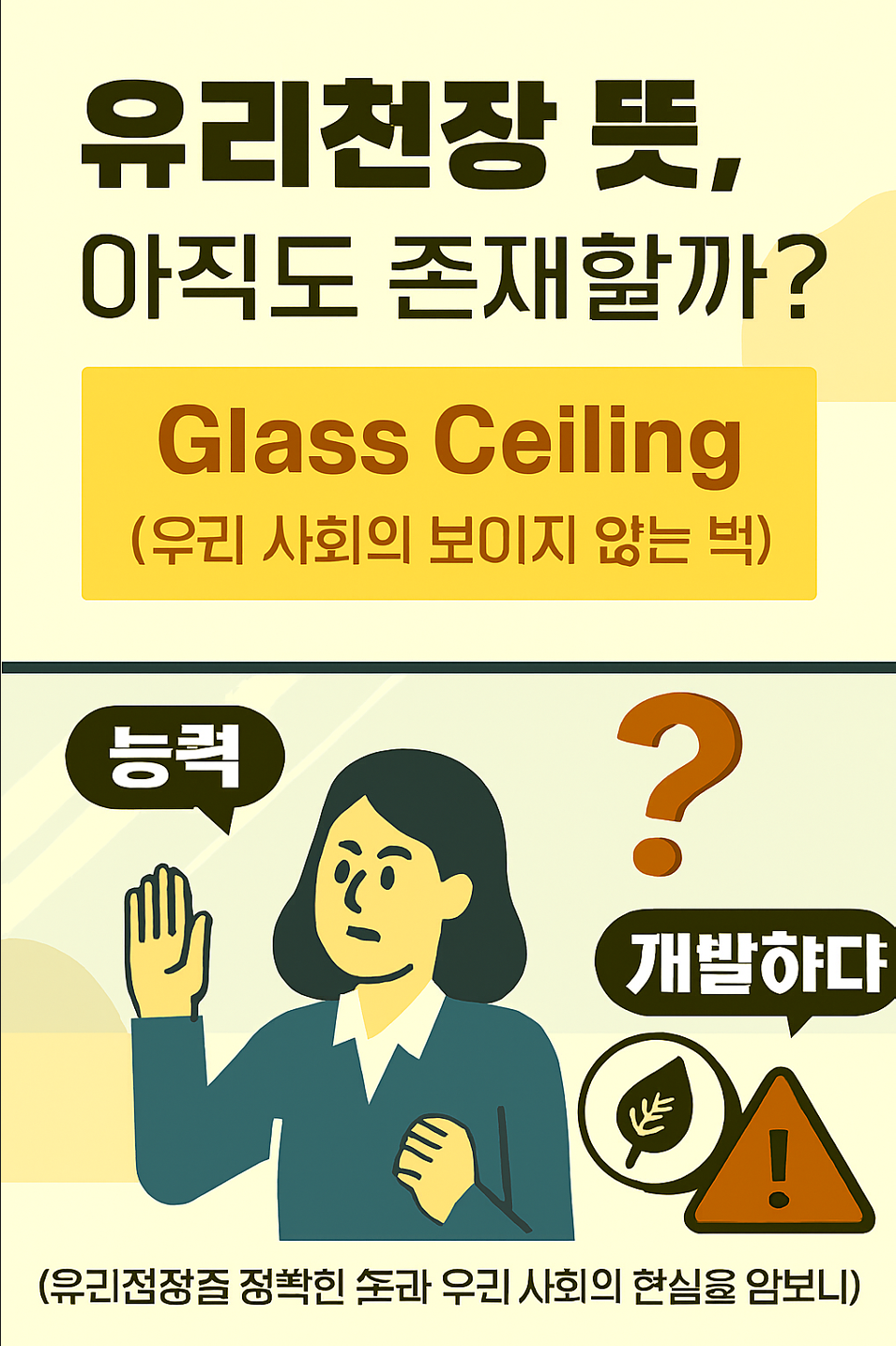 안녕하세요! 현실감간 ON입니다. 사회생활을 하거나 뉴스를 보다 보면 '유리천장(Glass Ceiling)'이라는 용어를 종종 접하게 됩니다. "여전히 깨지지 않는 유리천장", "유리천장을 뚫은 여성 리더" 등 다양한 맥락에서 사용되는데요. 뭔가 여성이 높은 자리로 올라가기 어려운 상황을 비유하는 말 같긴 한데, 정확히 어떤 의미일까요?