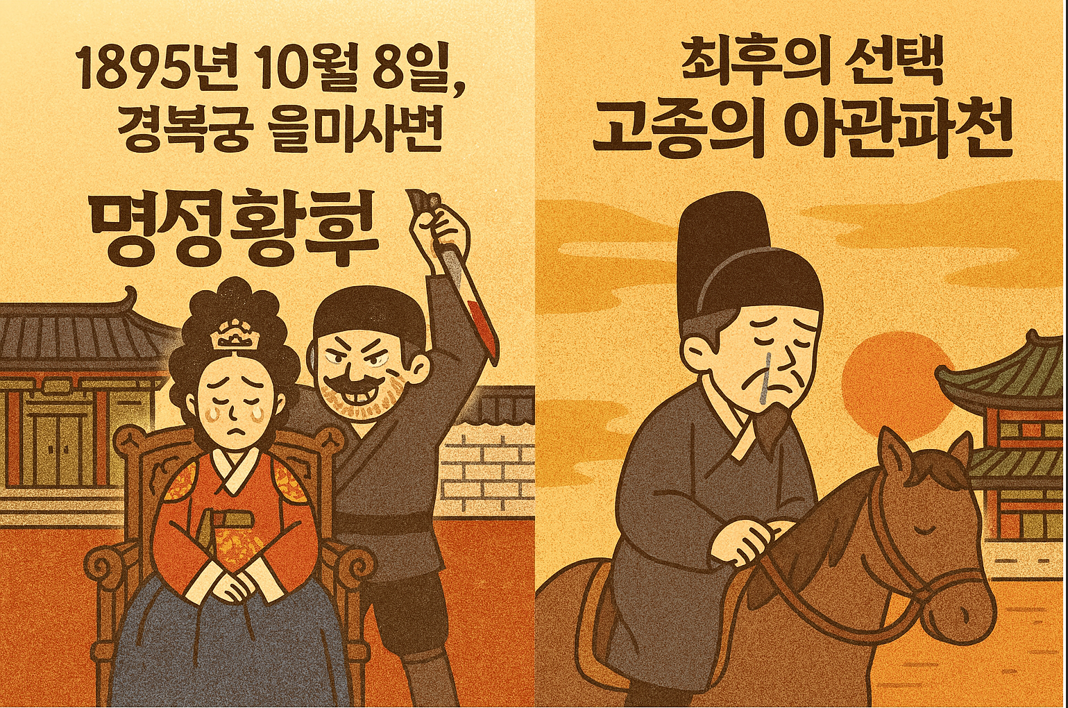 1895년 10월 8일(음력 8월 20일), 경복궁 건청궁에서 일본 낭인들에 의해 명성황후가 시해당한 을미사변(乙未事變)은 조선 역사상 가장 치욕적인 사건 중 하나입니다. 일본의 명성황후 시해는 단순히 한 왕비를 죽인 것을 넘어, 조선의 자주독립 의지를 꺾고 내정 간섭을 강화하려는 치밀한 계획이었습니다. 그렇다면 조선은 이 엄청난 국난에 어떻게 대응했을까요? 궁궐에 갇힌 고종의 절박한 선택부터 전국을 뒤흔든 백성들의 저항까지, 그 이후의 역사를 살펴봅니다.