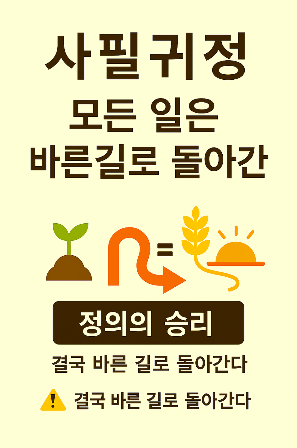 세상이 공평한 이유는, 나의 행동(인과)과 세상의 흐름(사필)이 결국 '정의'와 '이치'라는 거대한 법칙 안에서 움직이기 때문일 것입니다. 당장 눈앞의 불공평함에 좌절하기보다, 묵묵히 선한 원인을 심고 바른길을 걷다 보면, 언젠가 반드시 그에 합당한 결과를 만날 수 있지 않을까요?