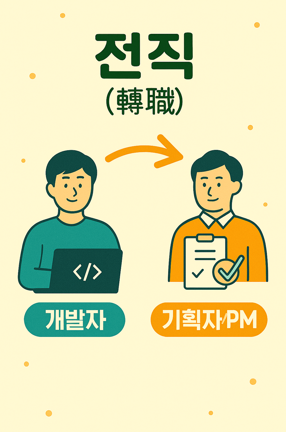 - 전직(轉職): 하는 '일' 자체가 바뀜 (예: 개발자 → 기획자)