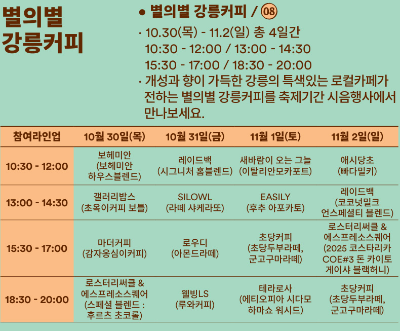 - 장소: 강릉 커피거리 및 강릉시 일원