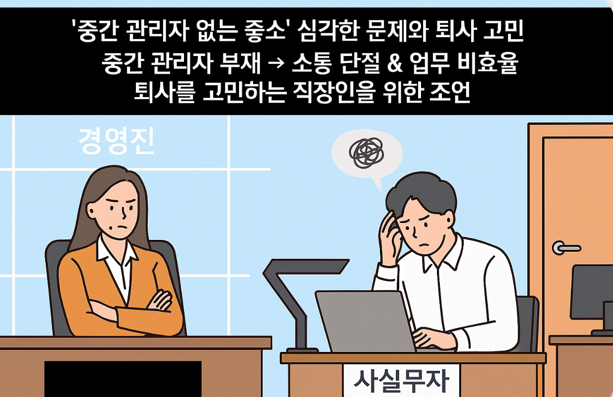 최근 많은 중소기업(속칭 '좋소')에서 흔히 발견되는 심각한 조직 병폐 중 하나는 바로 '중간 관리자의 부재'입니다.