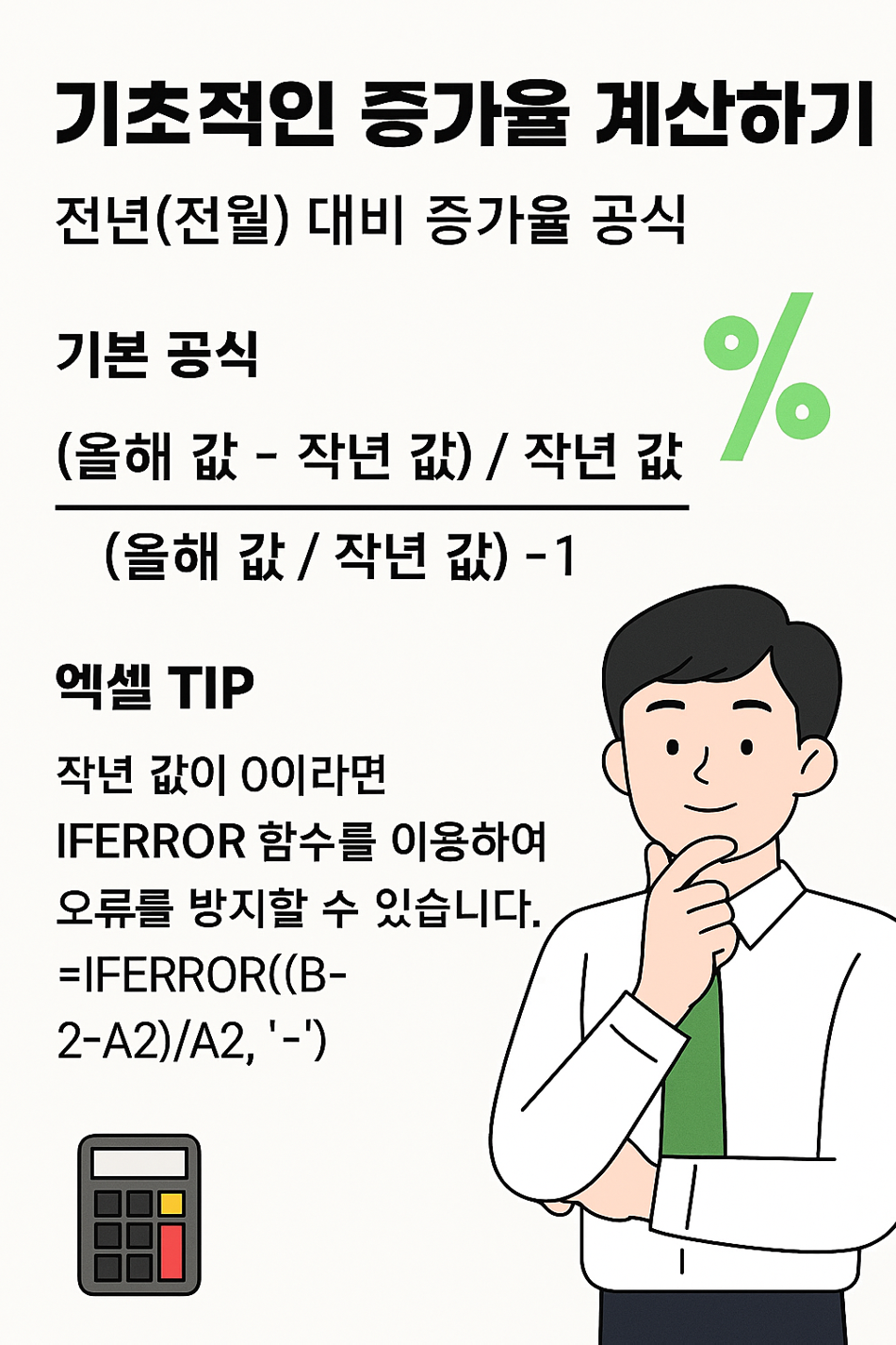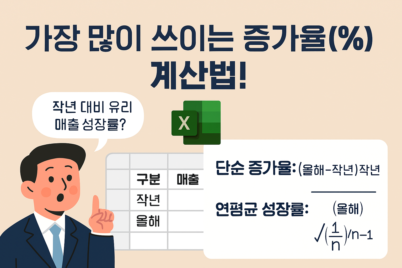직장인이라면 누구나 한 번쯤 겪는 상황이 있죠. "김 대리, 작년 대비 우리 매출 성장률이 얼마나 되지?"라는 상사의 질문! 순간 머릿속이 하얗게 변하고 계산기를 찾고 계시진 않나요?