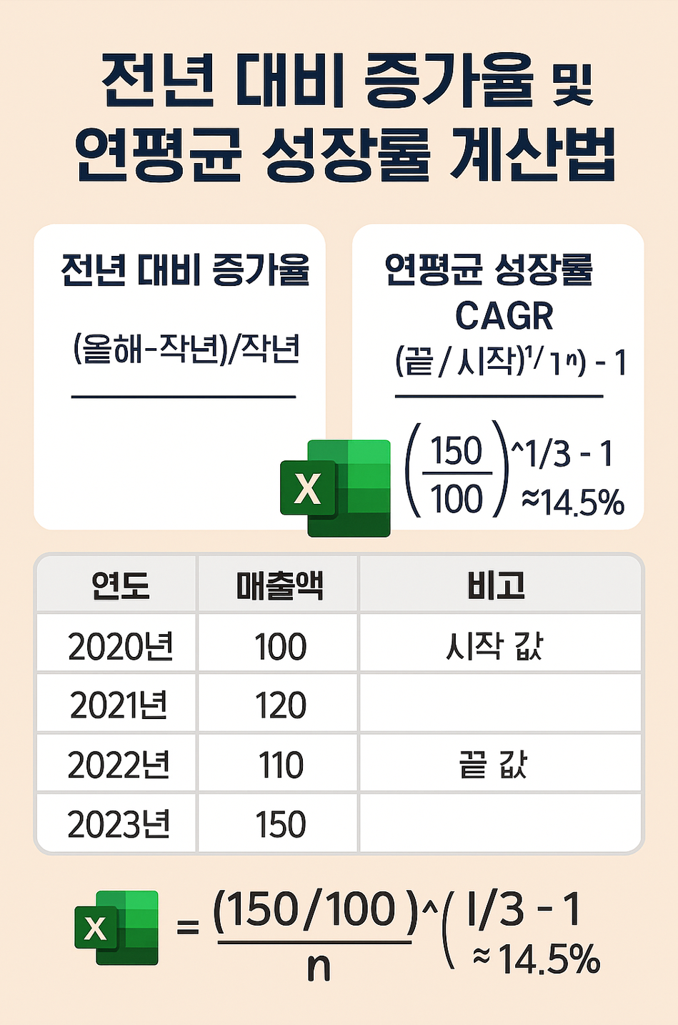 =(최종 연도 값 / 첫 연도 값)^(1 / 기간) - 1