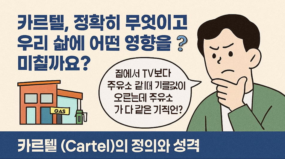 혹시 뉴스에서 '담합'이라는 단어를 자주 들어보셨나요? 🧐 이게 바로 카르텔을 쉽게 설명하는 말인데요. 우리는 시장에서 수많은 경쟁 덕분에 더 싸고 좋은 물건을 살 수 있다고 생각하잖아요.