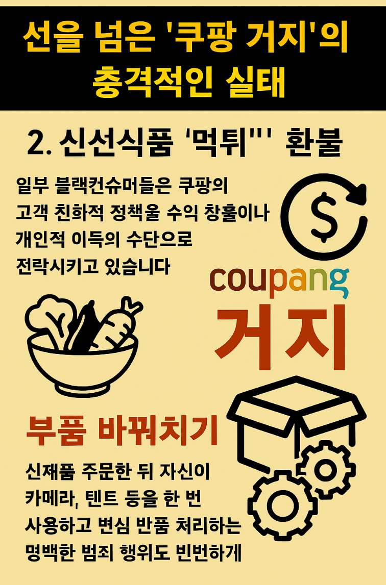일부 블랙컨슈머들은 쿠팡의 고객 친화적 정책을 수익 창출이나 개인적 이득의 수단으로 전락시키고 있습니다.