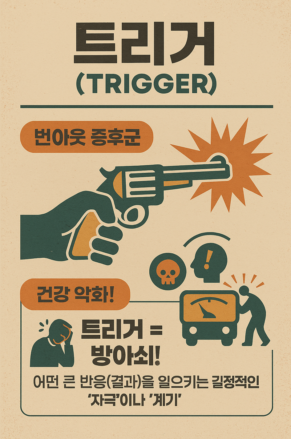 심리학에서는 아픈 상처를 건드리는 '방아쇠'가 될 수 있고, IT나 마케팅에서는 자동화를 이끄는 효율적인 '방아쇠'가 될 수도 있죠. 중요한 것은 나의 말이나 행동이 누군가에게 부정적인 트리거가 되지 않도록 조심하고, 나 자신의 트리거가 무엇인지 이해하며 마음을 다스리는 지혜일 것입니다.