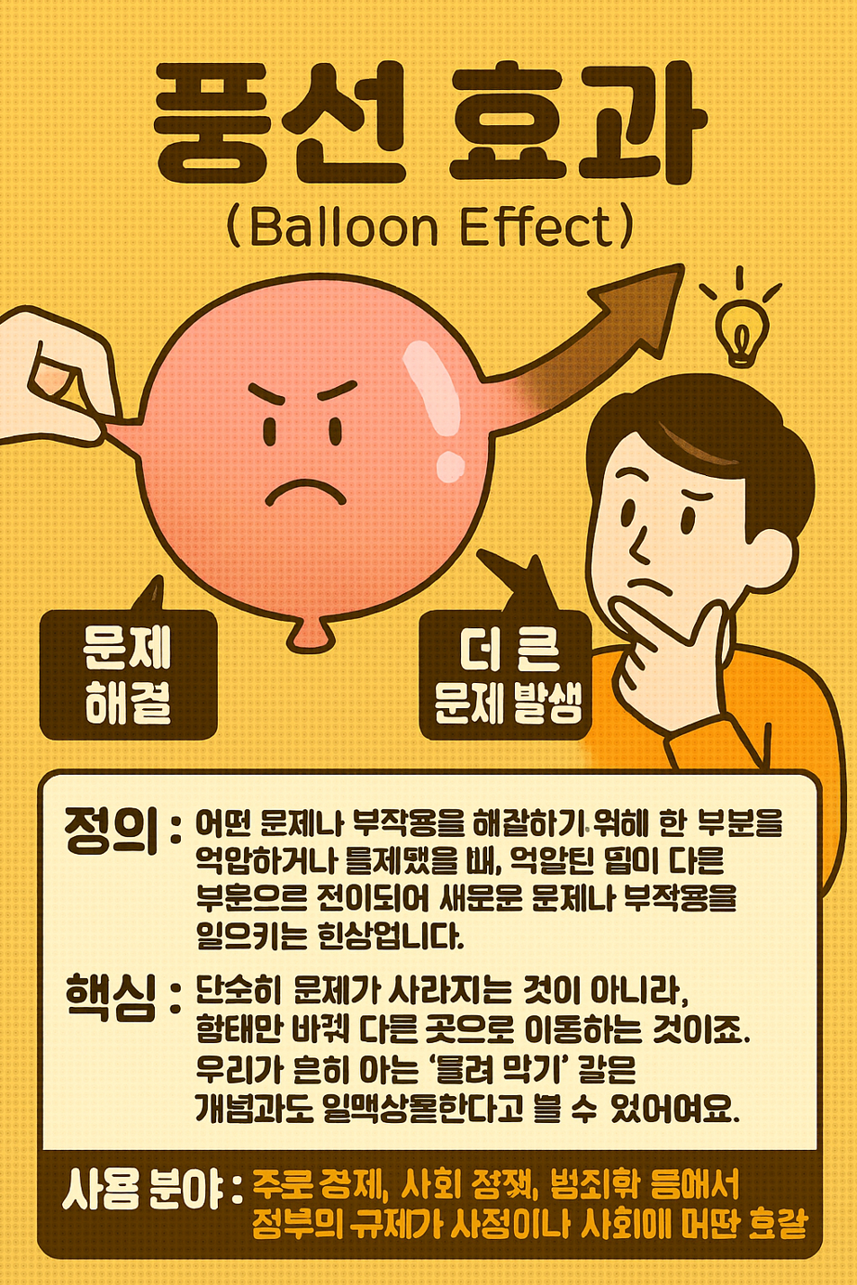 오늘은 우리 사회의 다양한 곳에서 발견되는 '풍선효과'에 대해 자세히 알아봤어요. 단순히 단어를 아는 것을 넘어, 왜 이런 현상이 반복되는지 그 원리까지 이해하는 좋은 시간이었기를 바랍니다.