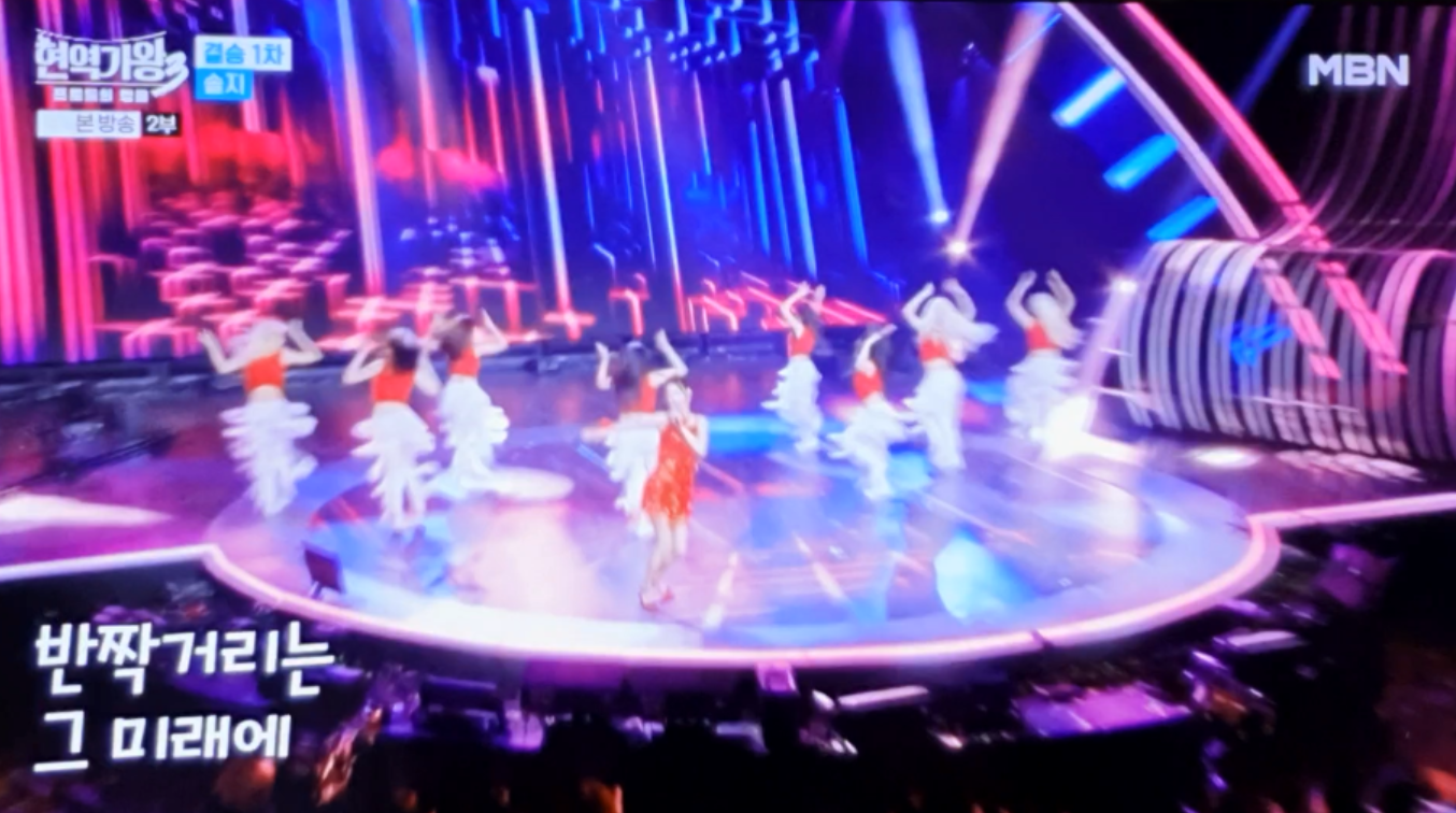 윤일상 작곡가 특유의 세련된 편곡과 중독성 강한 멜로디 위에 솔지는 자신의 전매특허인 시원한 고음과 폭발적인 성량을 아낌없이 뽐냈습니다. 특히 트로트 특유의 리듬감을 살린 리드미컬 발성을 선보이며 장르의 경계를 허무는 듯한 신선함을 더했습니다. 가사가 가진 긍정적인 에너지를 극대화하기 위해 보컬에 밝은 배음을 섞어 무대 전체의 분위기를 한층 더 고양시켰다는 점은 주목할 만합니다.