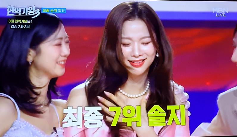 A2: 솔지 씨는 마스터 평가와 문자 투표 합산 결과, 최종 7위를 기록하며 국가대표 TOP7에 안착했습니다.