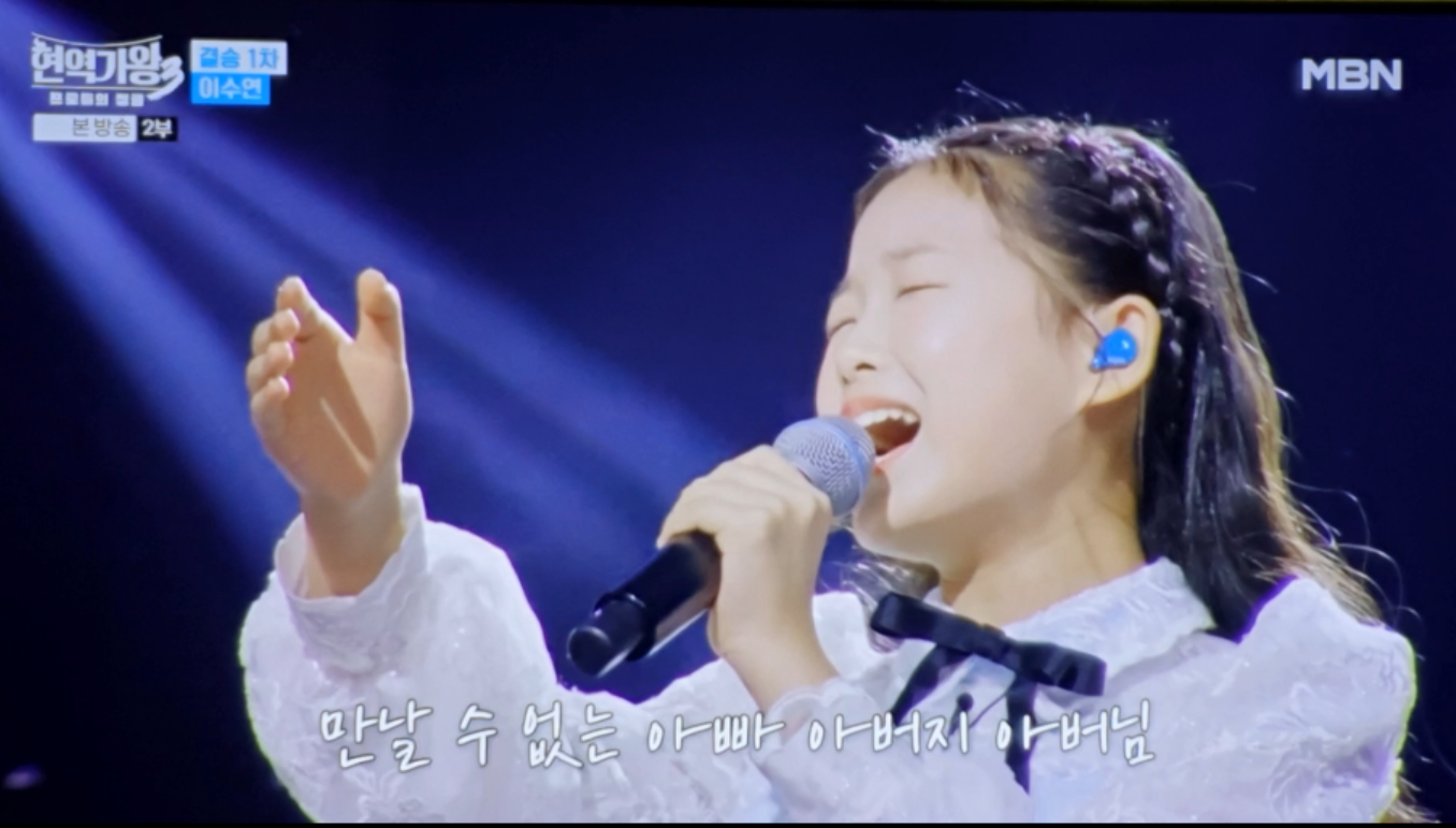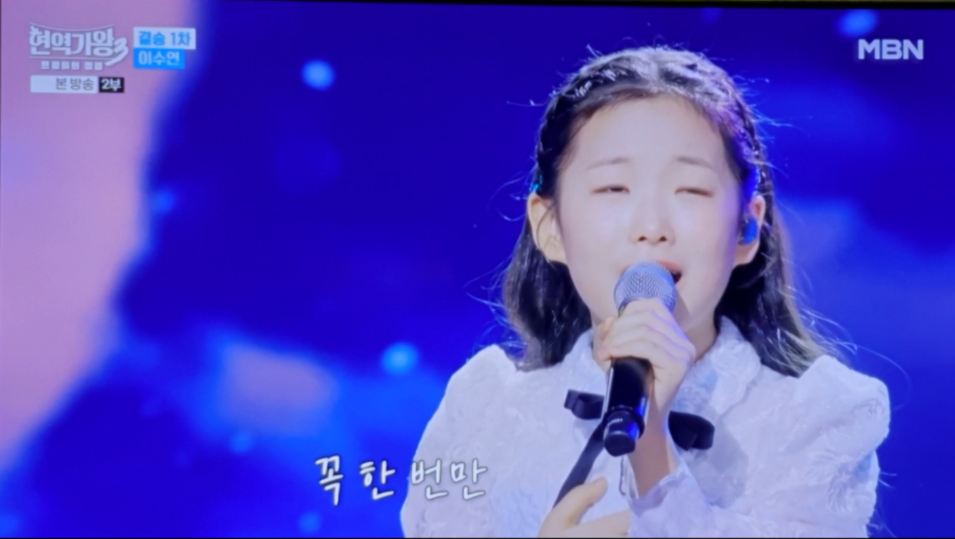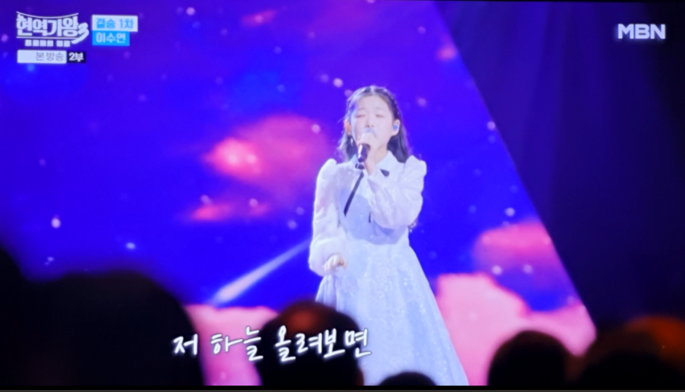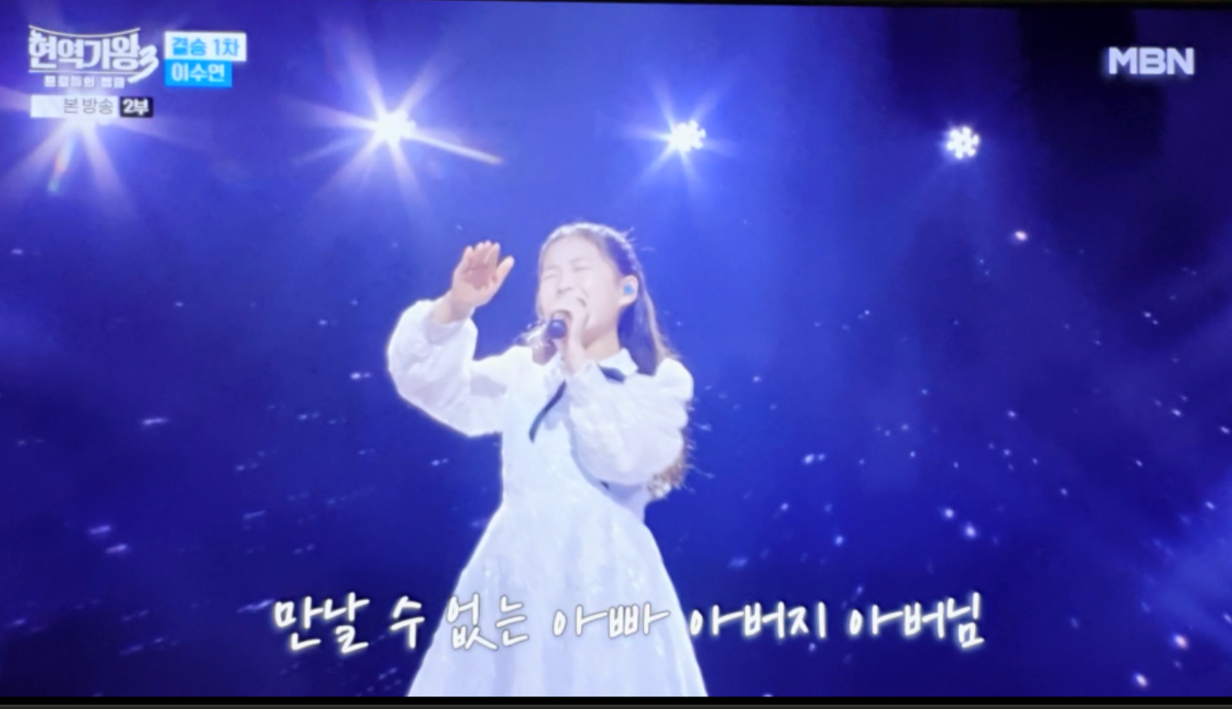 이수연 양은 '아빠, 아버지, 아버님'을 부르면서 단순히 가사를 전달하는 것을 넘어, 한 편의 드라마 같은 서사를 청중에게 선사했습니다. 그녀의 보컬은 호칭의 변화에 따라 감정의 톤을 미세하게 조절하며, 듣는 이로 하여금 마치 자신 또한 그 편지의 주인공이 된 듯한 깊은 공감대를 형성하게 했습니다. 어린 나이임에도 불구하고, 그리움이라는 복합적인 감정을 절제와 폭발의 완벽한 완급 조절로 풀어낸 것은 그녀가 왜 '황금 막내'이자 '천재'로 불리는지를 명확히 보여주는 대목입니다.