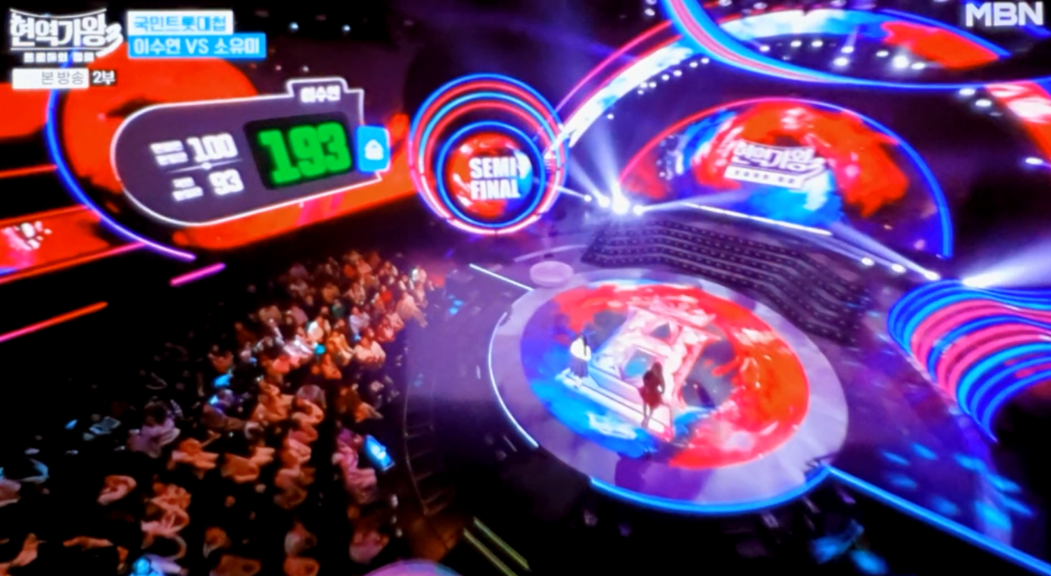 1. 이수연 압도적 승리: MBN '현역가왕3' 준결승에서 이수연이 소유미를 193대 67로 꺾고 승리했습니다.