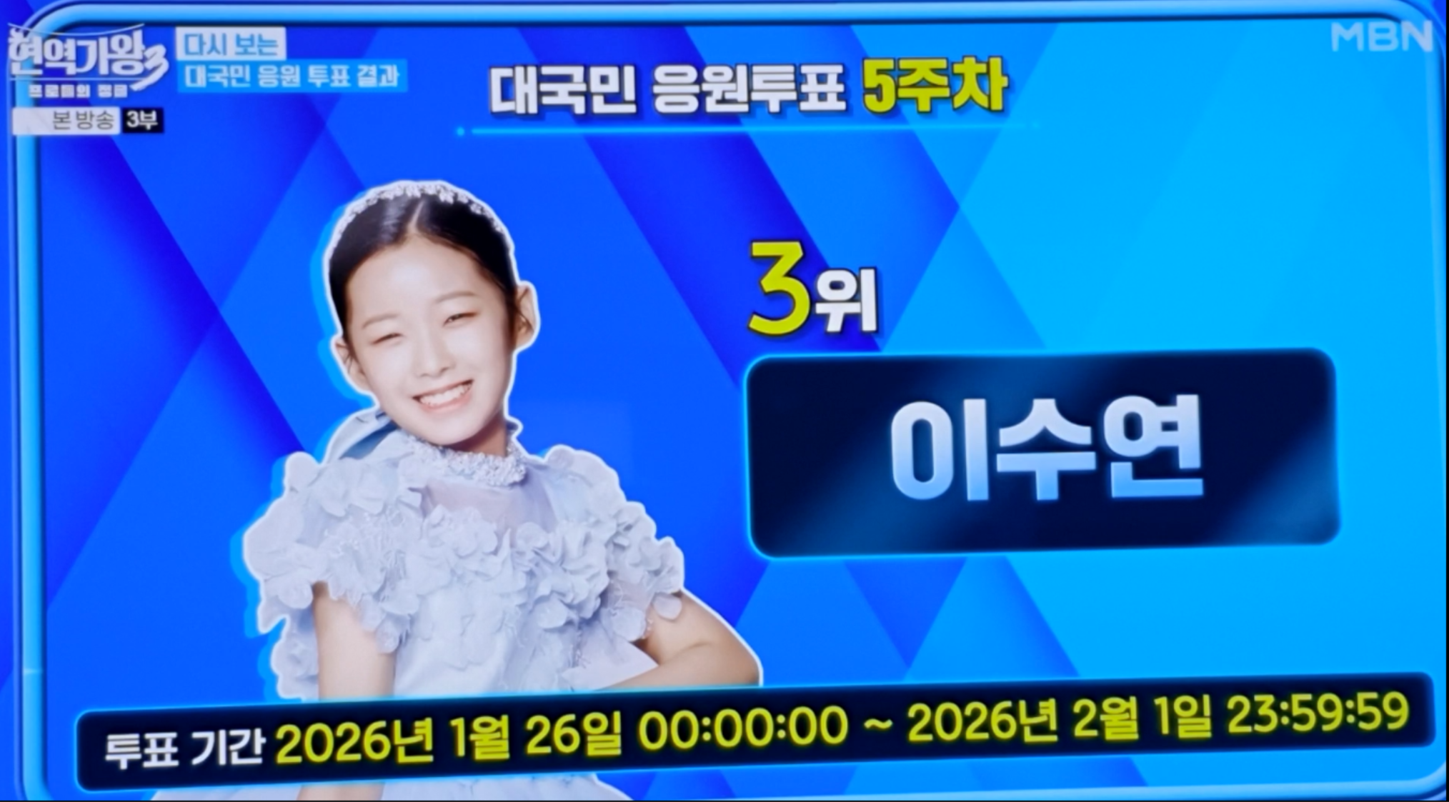 현재 이수연 님은 MBN 경연 프로그램 '현역가왕3'에서 단연 돋보이는 존재감을 자랑하고 있습니다. 최연소 현역이라는 타이틀이 무색할 만큼, 베테랑 성인 가수들 사이에서도 밀리지 않는 압도적인 실력을 과시하며 매회 시청자들을 놀라게 하고 있어요.