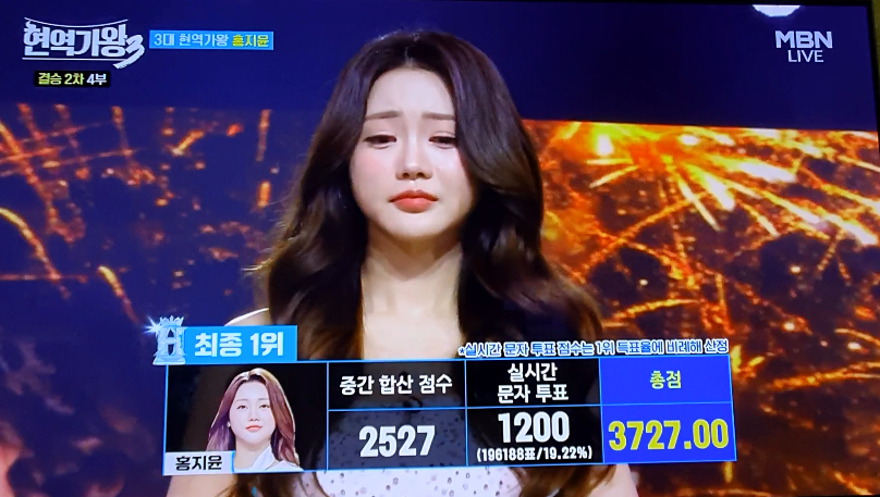 홍지윤은 이미 대국민 응원 투표에서 줄곧 1위 자리를 굳건히 지켜왔으며, 생방송으로 진행된 결승전 실시간 문자 투표에서도 196,188표라는 경이로운 수치를 기록하며 경쟁자들을 압도했습니다. 이수연, 차지연 등 쟁쟁한 실력자들 사이에서도 독보적인 존재감을 드러낸 홍지윤은 총점 3,727점으로 최종 1위에 오르며 그 어떤 이의 제기 없는 완벽한 우승을 거머쥐었습니다.