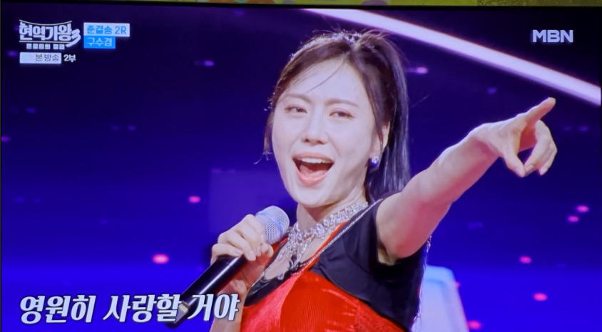 - • 구수경, 락으로 파격 변신: '황홀한 고백' 무대로 기존 이미지를 탈피, 최종 4위로 결승 직행!