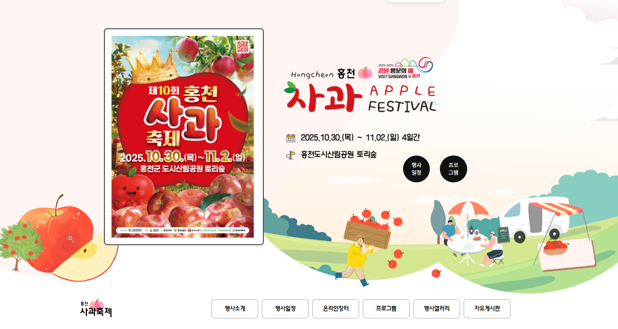 - 주요 내용: 홍천 사과 판매, 시식, 공연, 체험 등