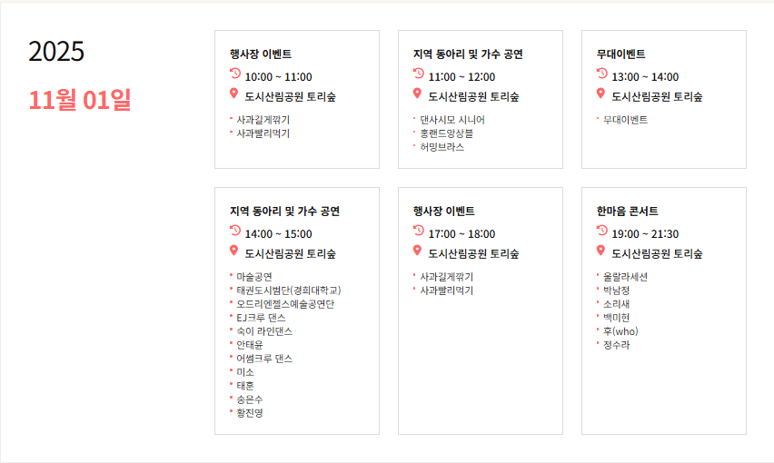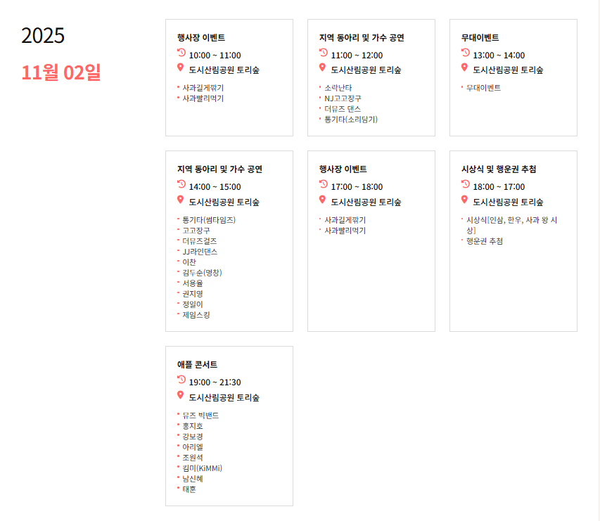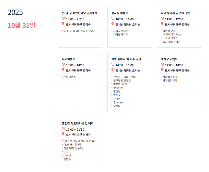 2025.10.27 - [분류 전체보기] - 홍천 사과축제 일정 정리(10/30 - 11/02)