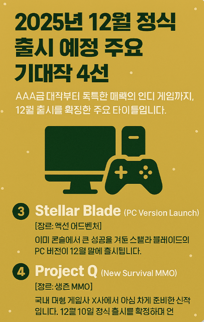 1. 2025년 12월 정식 출시 예정 주요 기대작 4선