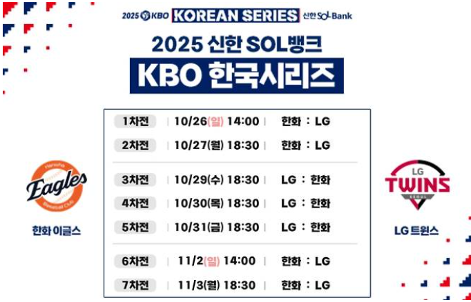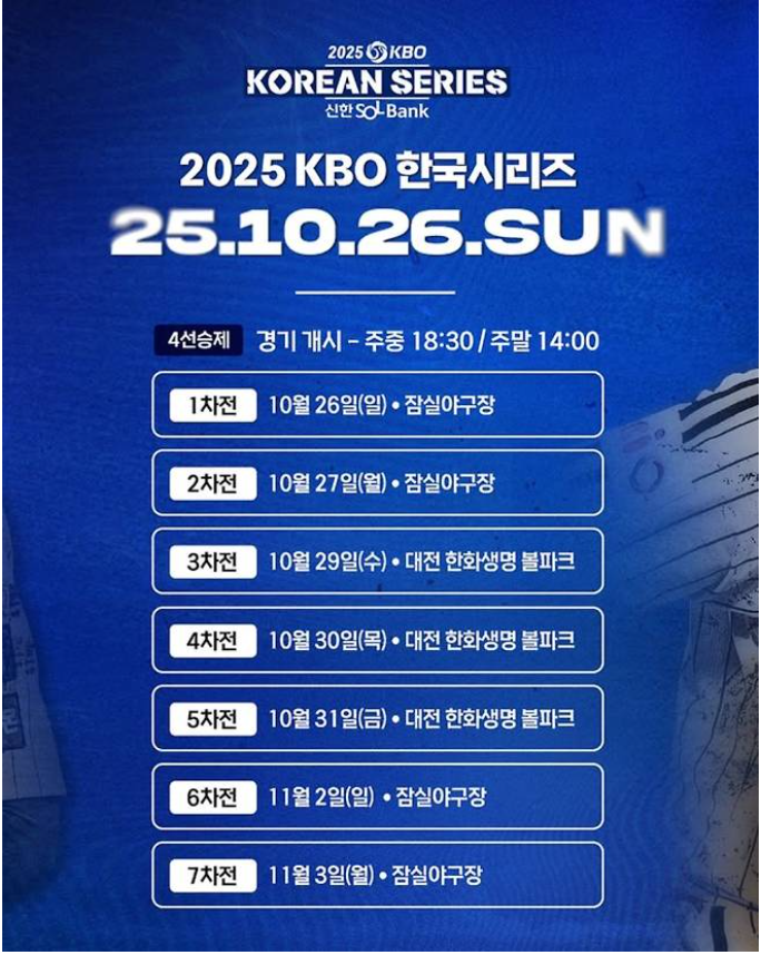 | 10월 25일(토) | 오전 11시 | 10월 26일(일) 한국시리즈 1차전 | 잠실 |