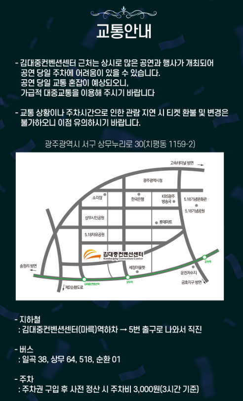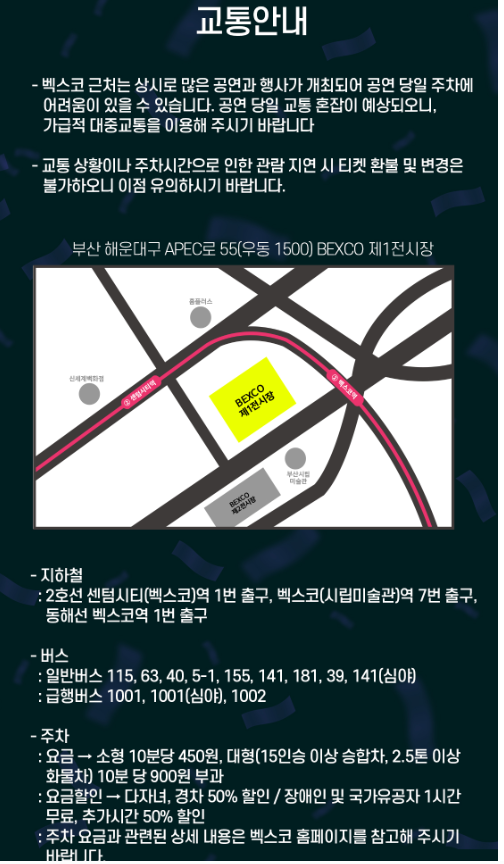 - 교통 및 주차: 벡스코, 엑스코, 김대중컨벤션센터 등은 주차가 매우 혼잡합니다. 지하철이나 대중교통 이용을 적극 권장합니다.