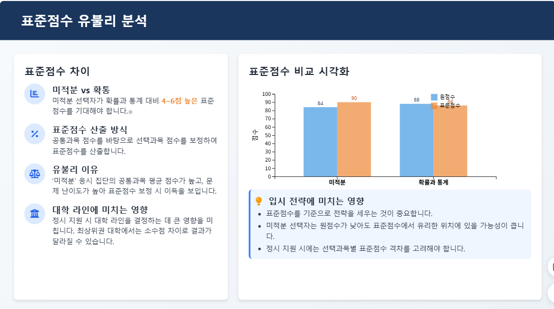 - 핵심 변수: '미적분'과 '확통'의 표준점수 격차는 여전히 클 것으로 예상. 정시 지원 시 핵심 변수가 될 것입니다.