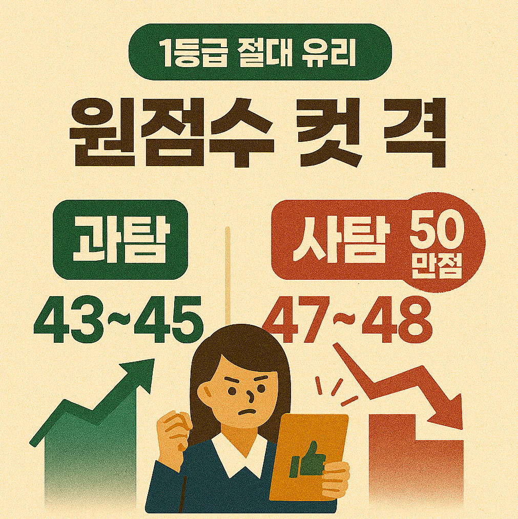 반면, 가장 많은 학생이 응시하는 '생활과 윤리', '사회·문화' 등 사탐 과목들은 1등급컷이 47~48점, 심지어 50점 만점(일부 과목)까지 예측되며 표준점수에서 큰 손해를 볼 것으로 보입니다.