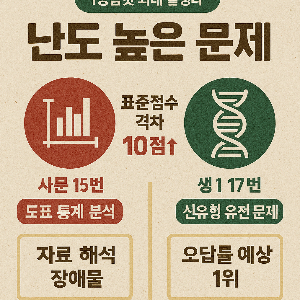 국어, 수학에서 만점을 받은 최상위권 의대 지원자들 사이에서는, 결국 탐구 과목이 당락을 가르게 됩니다. 특히 '생명과학 I'의 고난도 유전 문제나 '화학 II'의 복잡한 계산 문제를 맞혔느냐 틀렸느냐에 따라 표준점수가 2~3점씩 차이 날 수 있습니다. 올해 의대 입시는 '수학 22번'이 아니라 '생명 17번'이 갈랐다는 말이 나올 정도입니다.