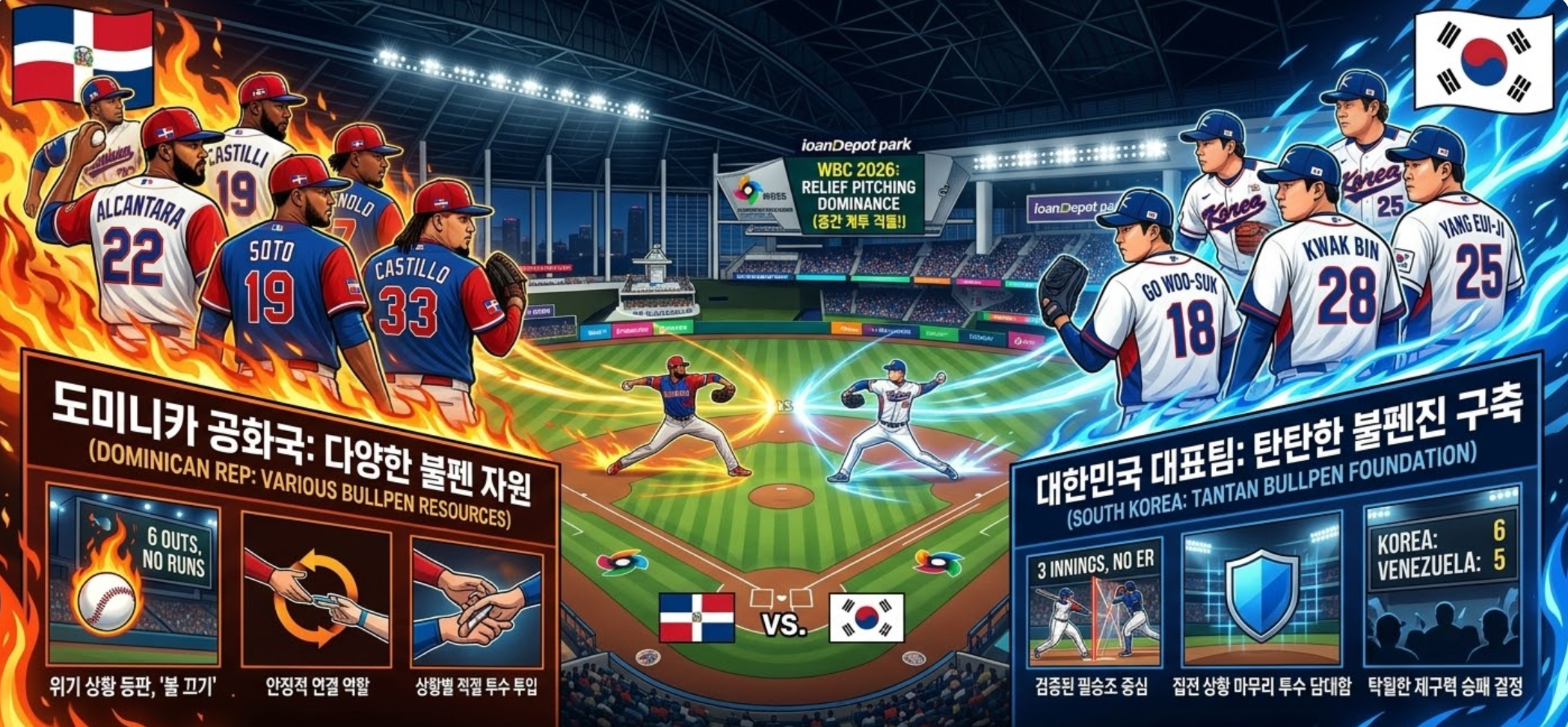 WBC와 같은 단기전에서는 선발 투수 못지않게 중간 계투와 마무리 투수의 역할이 매우 중요합니다. 도미니카는 다양한 유형의 불펜 투수들을 보유하고 있어 상황에 따라 적절한 투수를 투입하며 상대 타선을 봉쇄할 수 있습니다. 한국 역시 KBO 리그에서 검증된 필승조를 중심으로 탄탄한 불펜진을 구축했습니다. 특히 접전 상황에서 마무리 투수의 담대함과 제구력이 승패를 결정지을 가능성이 높습니다.