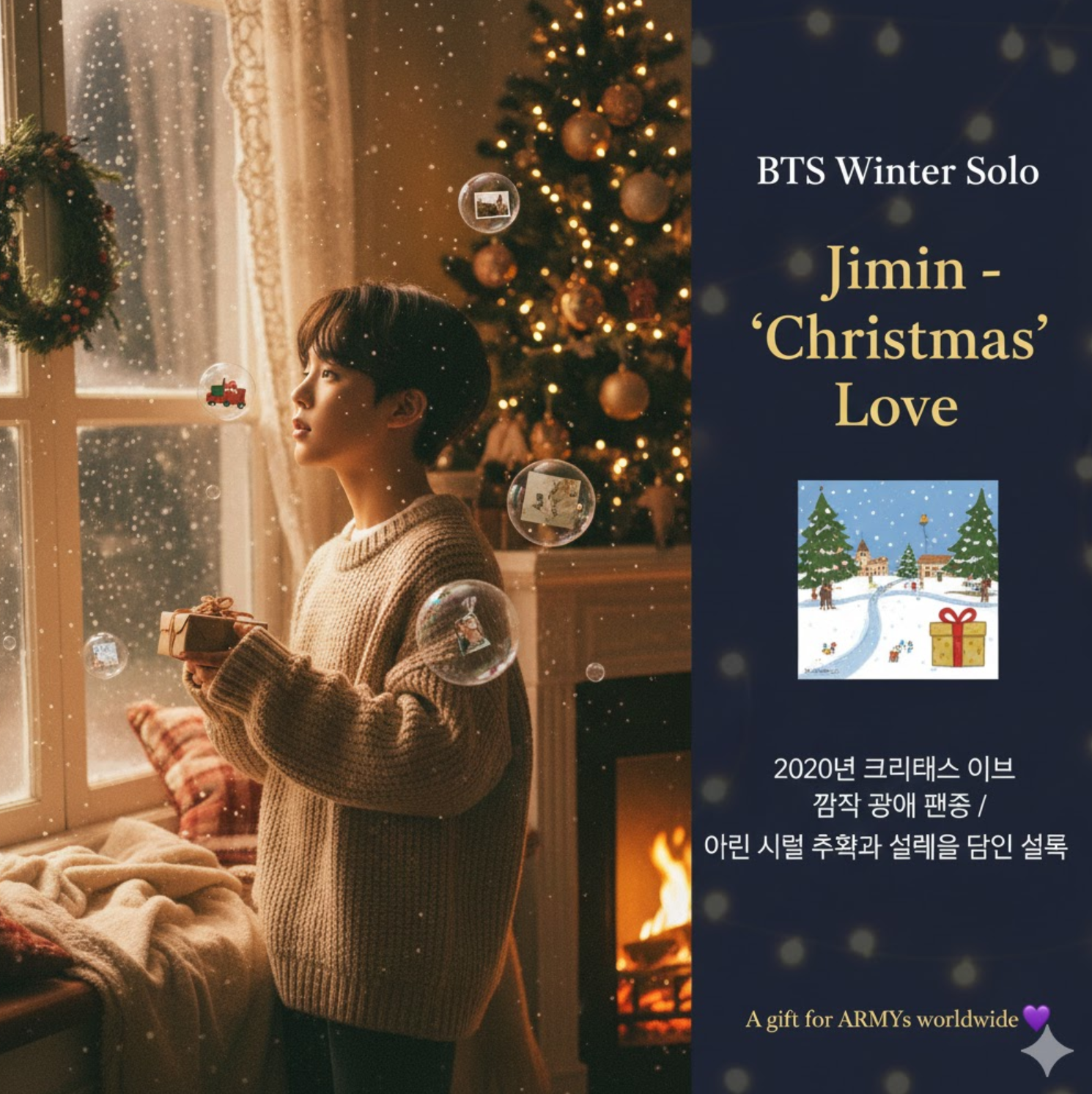 - 2020년 크리스마스 이브에 깜짝 공개된 곡으로, 지민의 어린 시절 추억과 크리스마스의 설렘을 담아낸 팬들을 위한 선물 같은 곡입니다.